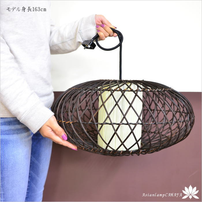 製造国 インドネシア(シェード)、 日本(ソケット) 素材 ラタン、布、アイアン他 サイズ 最大幅42cm×高さ21cm 重さ:約620g ※入荷の時期により多少の個体差があります カラー ダークブラウン 付属品 電球: E17/40W ※LED電球対応 コード: 標準50cm/黒 ※色、長さ、レール用コード変更可能 ※ON/OFFスイッチはついておりません 関連 インドネシアバリ島で厳選買い付け! アジアン照明 ペンダントランプ 吊り下げ照明 吊り下げランプ シーリングランプ 天井照明 おしゃれ 店舗様照明 ラタン 和風 モダン ※撮影小物は含まれません。